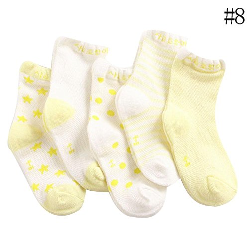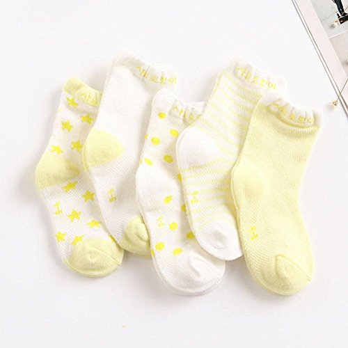 Nice Days(ナイス ディズ) 【5足セット】春夏 可愛い 子供 靴下 カラフル ソックス 男の子 女の子 クルー丈 通気性 (黄, 11-13㎝)