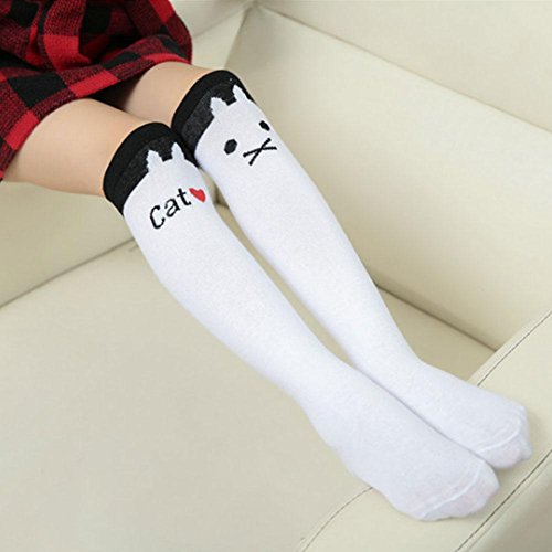 Nice Days(ナイス ディズ) 靴下 女の子 キッズソックス オーバーニーソックス 子供用ハイニーソックス 可愛い 猫柄 綿製 42cm (1#)