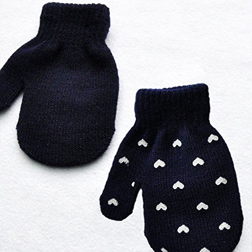 Nice Days(ナイス ディズ) ベビー あったかミトン かきむしり防止用手袋 ニット (ネービー ハート)