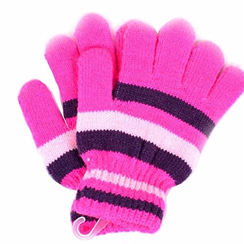Nice Days(ナイス ディズ) 手袋 子供用 ニット グローブ 5本指 保温 防寒 男の子 女の子 キッズ 通学 6-12歳に適用 (ローズレッド)