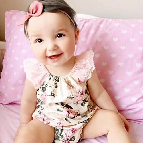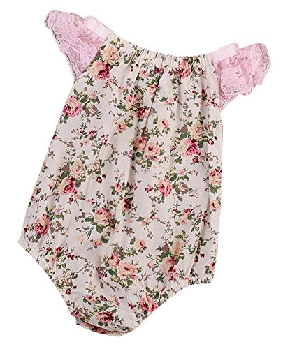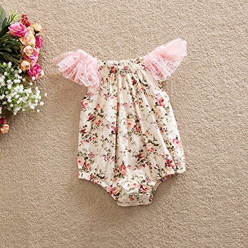 Nice Days(ナイス ディズ) 夏ベビーロンパース 女の子 可愛い 幼児服 コットン レース ピンク (80)