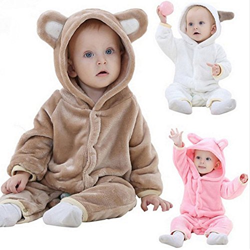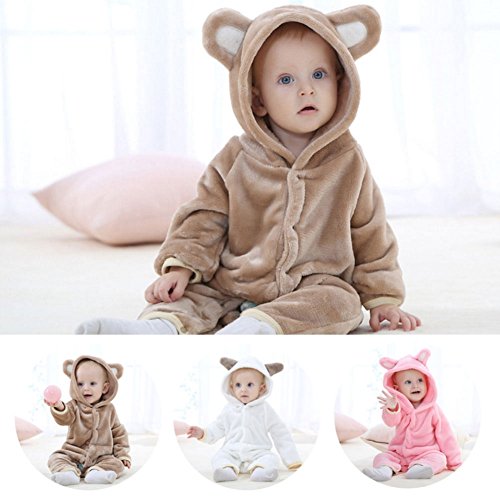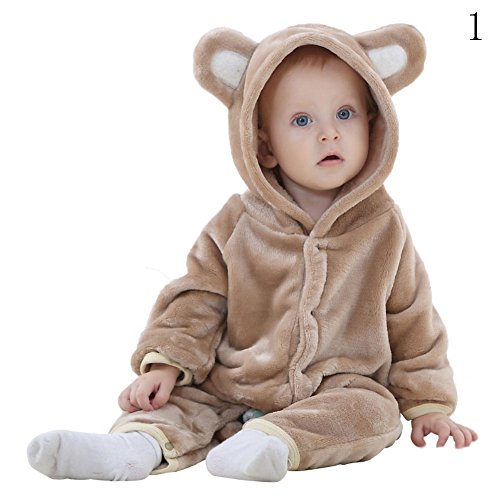 Nice Days(ナイス ディズ) ベビー&キッズ用 秋冬 ロンパース カバーオール 着ぐるみ 長袖 可愛い 熊ちゃん 女の子 男の子 暖かい 柔らかい 防寒着 出産お祝い (100, ブラウン)