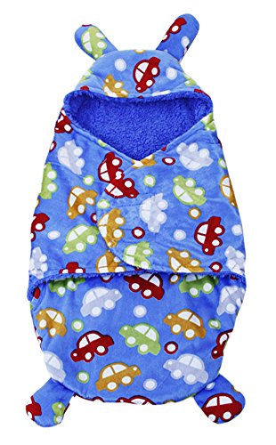 Nice Days(ナイス ディズ) ベビーおくるみ 可愛い寝袋 出産プレゼント (ブルー車)