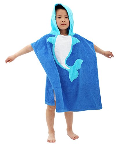 Nice Days(ナイス ディズ) 子どもバスローブ 可愛いキャラクター (ブルーイルカ)