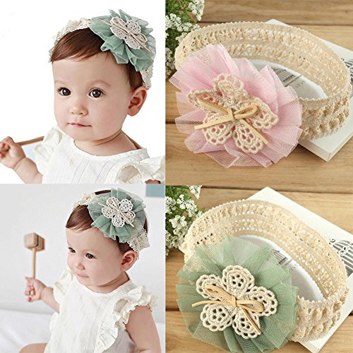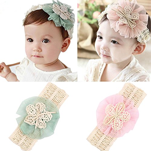 Nice Days(ナイス ディズ) 赤ちゃん 子供のヘアバンド 可愛いレース花 ヘアクリップ ヘアアクセサリー (グリーン)