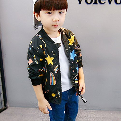 Nice Days(ナイス ディズ) 子供服 秋 ウインドブレーカー ブルゾン ジャケット 星空柄 男の子 女の子 ジュニア 防水 防風 通園 通学用 (100)