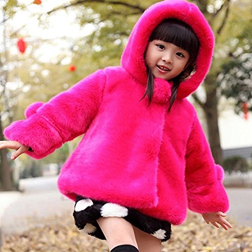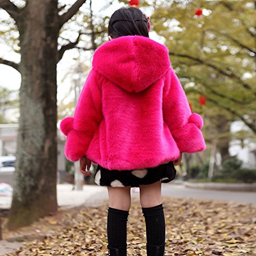 Nice Days(ナイス ディズ) 子供服 秋冬 キッズ コート 女の子 ふわふわ 柔らか ボア ボンボン フード付き 厚手 あったか 防寒 通園 通学用 (160, バラ色)
