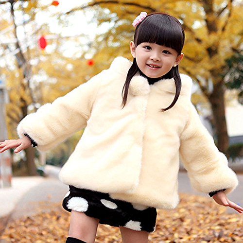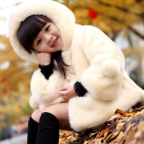 Nice Days(ナイス ディズ) 子供服 秋冬 キッズ コート 女の子 ふわふわ 柔らか ボア ボンボン フード付き 厚手 あったか 防寒 通園 通学用 (160, 白)