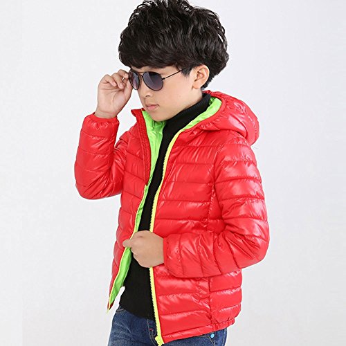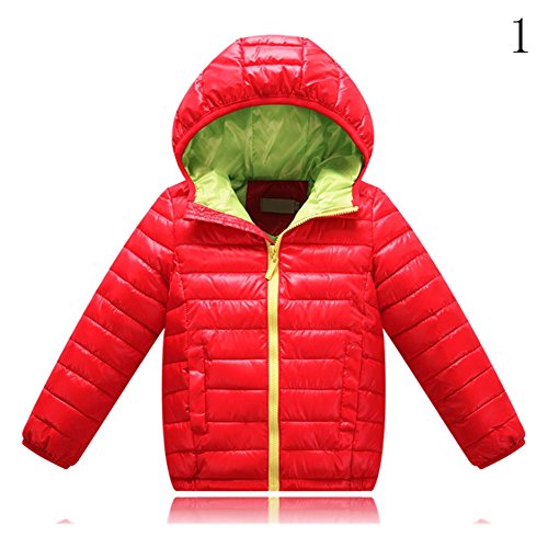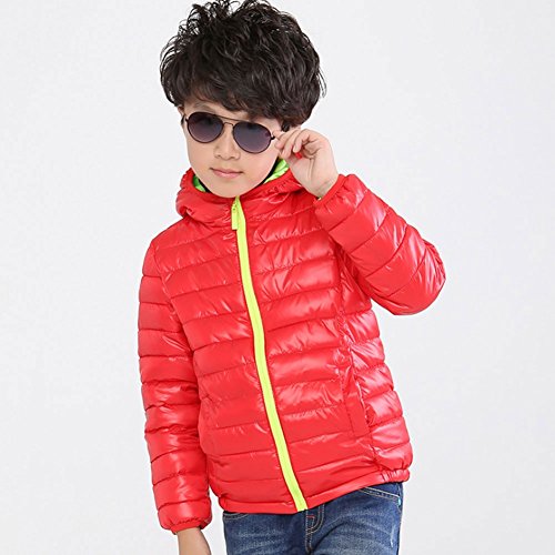 Nice Days(ナイス ディズ) 子供服 秋冬 コート ダウンコート フード付き 綿服 ジャケット シンプル 厚手 保温 防寒 軽い 女の子 男の子 ユニセックス 通園 通学 (120, 赤)