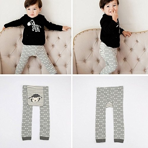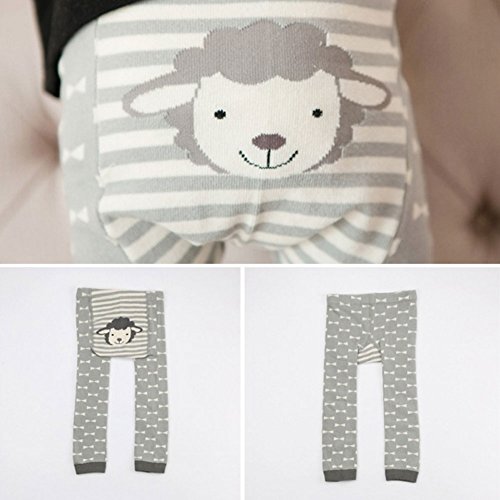 Nice Days(ナイス ディズ) キッズ用 レギンス ベビースパッツ 春秋 綿 ロングパンツ 女の子 ストレッチ スパッツ 着やせ かわいい 動物柄 (S, グレーの羊)