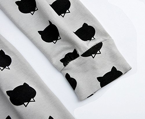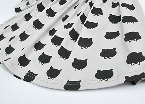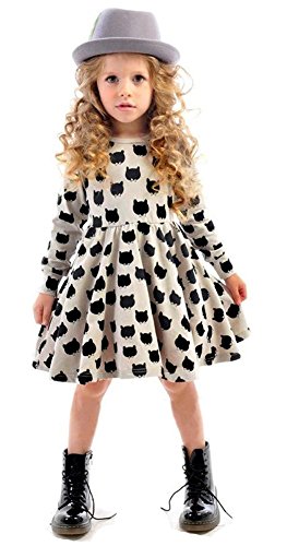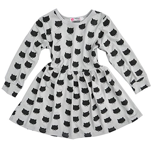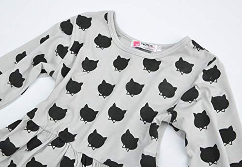 Nice Days(ナイス ディズ) 欧米風ファッション 可愛い女の子ワンピース ドレス ススカート 弾力 スリム 長袖 可愛い黒猫ちゃん柄 コットン (100)
