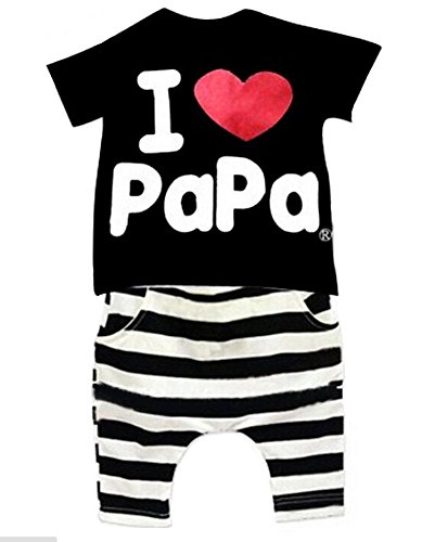 Nice Days(ナイス ディズ) I LOVE PaPa ベビー服 可愛いTシャツ 男女兼用 Tシャツ+パンツ 2点セット (100, ブラック)