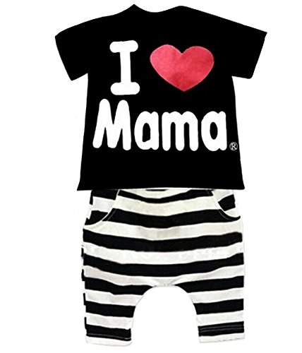 Nice Days(ナイス ディズ) I LOVE MaMa ベビー服 可愛いTシャツ 男女兼用 Tシャツ+パンツ 2点セット (90, ブラック)