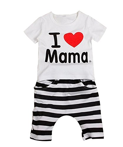 Nice Days(ナイス ディズ) I LOVE MaMa ベビー服 可愛いTシャツ 男女兼用 Tシャツ+パンツ 2点セット (100, ホワイト)
