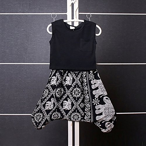 Nice Days(ナイス ディズ) ベビー服 女の子可愛いTシャツ 象ムササビ Tシャツ+パンツ 2点セット (130cm)
