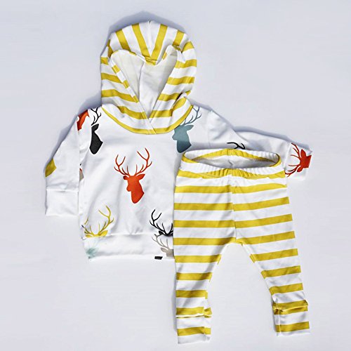 Nice Days(ナイス ディズ) ベビーパーカー フード付き 女の子服 可愛い鹿 パンツ2点セット 七五三 出産 プレゼント (90)
