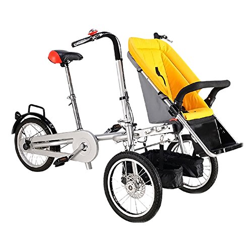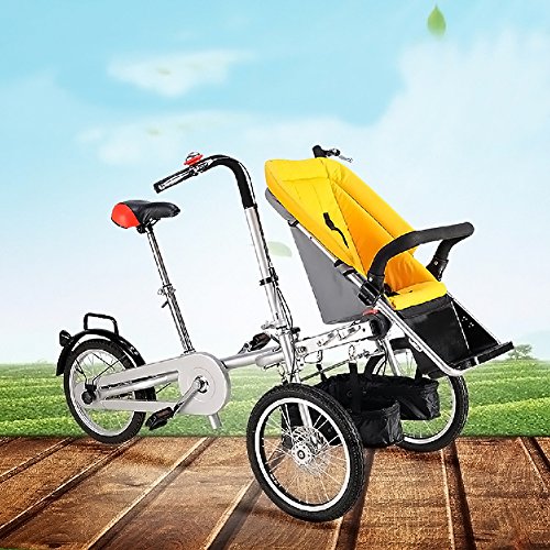 Nice Days(ナイス ディズ) 折りたたみ式 ベビーカー 三輪車 両用 ベビーバギー 三輪自転車 専用レインカバー付属 (黄)