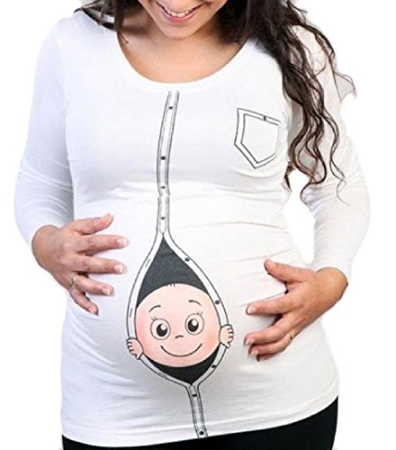 Nicellyer 女性のパターン化された特大の出産の目新しさティートッププルオーバー White M
