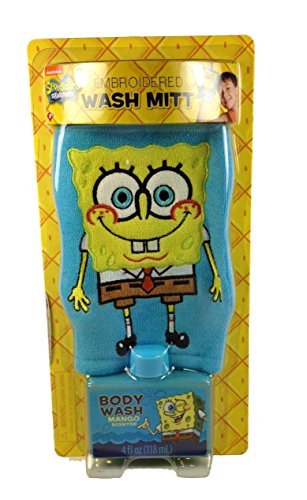 Embroidered Wash Mitt;4 oz Mango Scented Body Wash;Featuring SpongeBob Squarepants