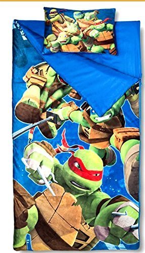 Set Includes : 1 Teenage Mutant Ninja Turtles Sleeping Bag and 1 pillow case 100% Polyester Sleeping bag rated to be comfortable in temperatures as low as 45 degrees Fahrenheit Machine wash, normal Slumber bat : 30 x 30 in - Pillow 11 x 17 in Let your little on take their favorite heroes to bed with them with the Teenage Mutant Ninja Turtles Sleeping Bag - 45 Degrees Fahrenheit. This sleeping bag is an explosive tribute to TMNT and makes overnights a little easier for first timers. Sleeping bags not only give your little one a comfortable place to rest when staying with friends and family but they may be a requirement for nap time at school or daycare and campers have long loved this bedtime necessity. And speaking of camping, if you're looking for a warm, reliable bag; this one is rated to be comfortable in temperatures as low as 45 degrees Fahrenheit. Watch as your little one takes their TMNT blanket with them everywhere for a little comfort no matter where they are.