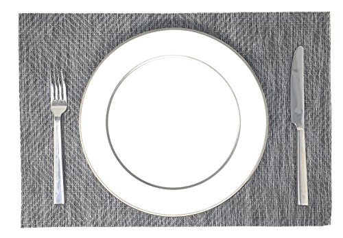 ホーム概念Basketweave Textiline織ビニールプレースマット グレー 150-P