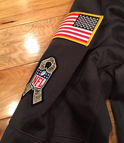 ベルクロのサービスに敬礼と左胸にパッチ、右袖にアメリカ国旗とNFLシールドのリボン、ナイキ左袖デザイン