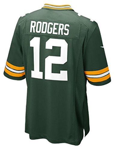 ユースNIKEアーロン・ロジャースゲームジャージー。プリントの名前と番号が表示されます。NFLシールドとネック部分です。
