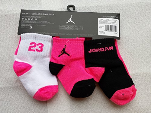 Nike 6ペア乳児幼児Jumpman Jordanソックス、12 – 24ヶ月、ブラック/ピンク/ホワイト