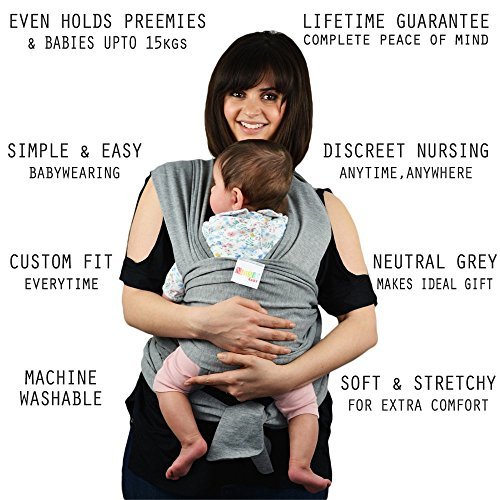 FLASH SALE Premium Baby Wrap Carrier Original Natural Cotton Baby Slings | Multiple Positions Soft and Lightweight Sling for Newborn Infants from Birth | Grey