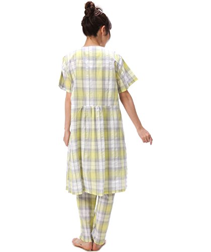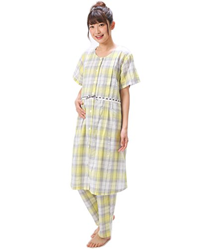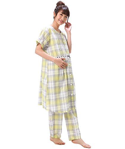 82101 Nishiki(ニシキ) マタニティ 半袖 上下セット 前開き ウエスト調整機能付きパンツ ボタン式授乳口 チュニック丈 妊婦 授乳 産前 産後 春 夏 秋 パジャマ ルームウェア 寝間着 入院準備【6:イエロー×グレー/LLサイズ】