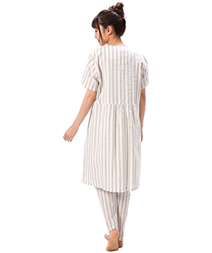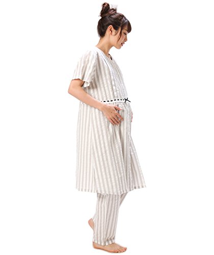 82101 Nishiki(ニシキ) マタニティ 半袖 上下セット 前開き ウエスト調整機能付きパンツ ボタン式授乳口 チュニック丈 妊婦 授乳 産前 産後 春 夏 秋 パジャマ ルームウェア 寝間着 入院準備【7:グレーストライプ/LLサイズ】
