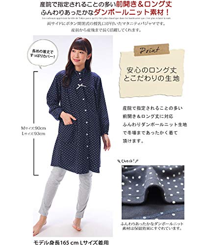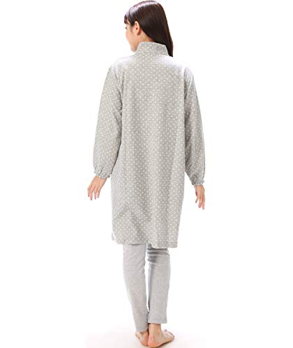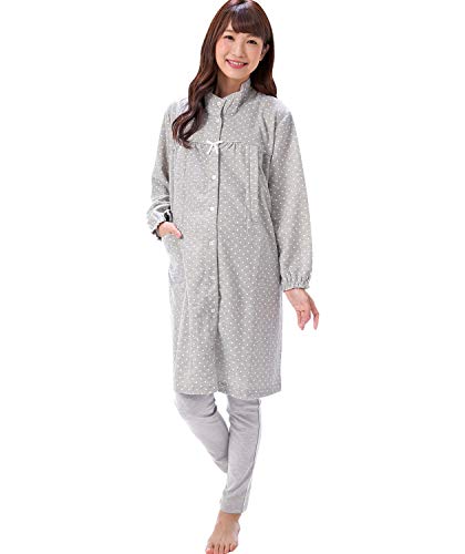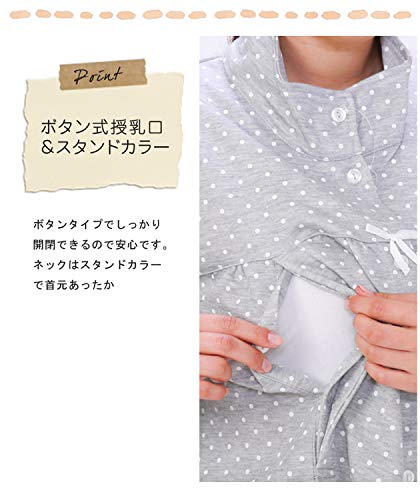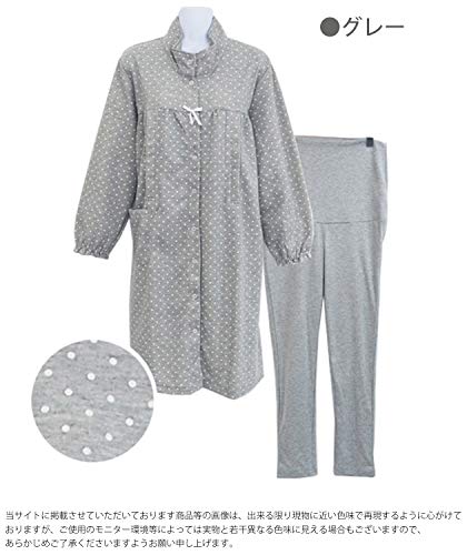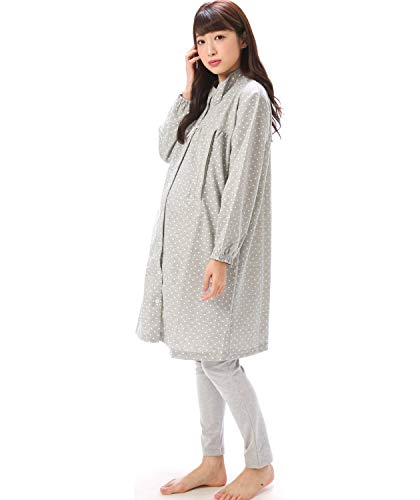 541074 Nishiki(ニシキ) マタニティ パジャマ 長袖 前開き 授乳口 秋 スタンドカラー ダンボールニット 産前 産後 のびのびウエストパンツ ドット柄 【グレー/M】