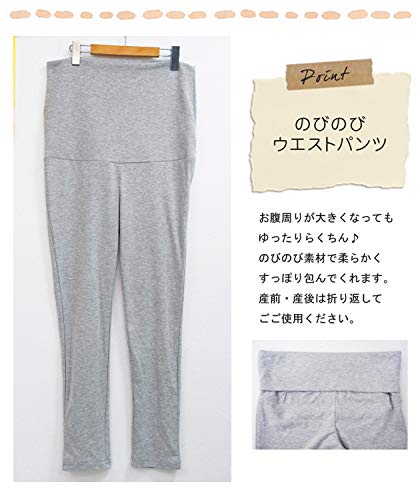 - 着脱可能な前開きボタン。ネックはスタンドカラーで首元あたたか、ボタン式授乳口付き。パンツはのびのびウエストですっぽり包んでくれます。産前産後は折り返してご使用ください。