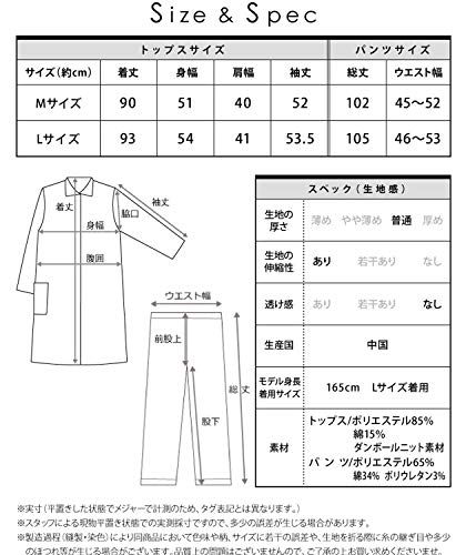 - 【Lサイズ】 トップス:着丈93 身幅54 肩幅41 袖丈53.5 ボトム:総丈105 ウエスト46-53