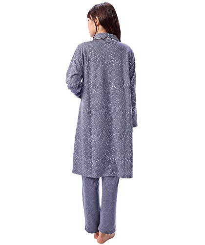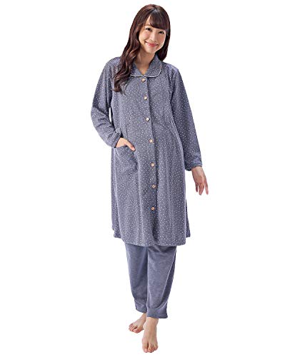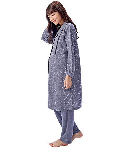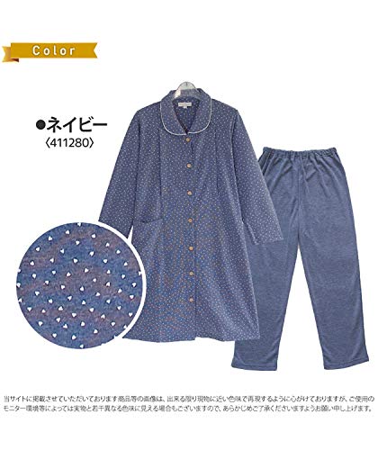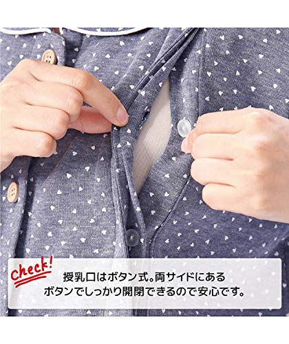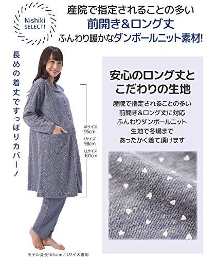 411280 Nishiki(ニシキ) ルームサプリ マタニティ パジャマ 長袖 授乳口付き 前開き レディース 秋 春 ダンボールニット素材 産前 産後 ウエスト調整付パンツ プチハート柄 【ネイビー/L】
