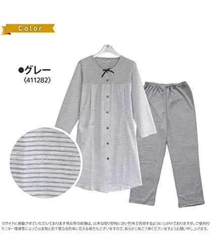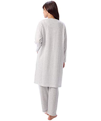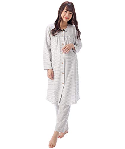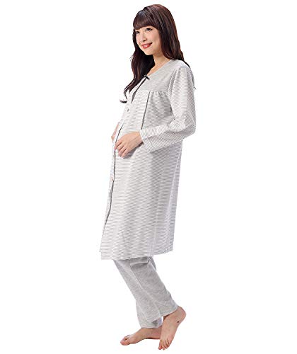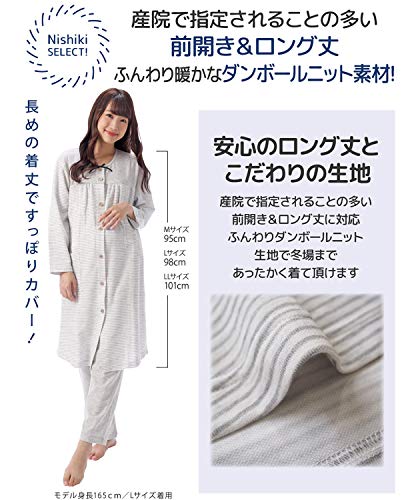 411282 Nishiki(ニシキ) ルームサプリ マタニティ パジャマ 長袖 授乳口付き 前開き レディース 秋 春 ダンボールニット素材 産前 産後 ウエスト調整付パンツ ボーダー柄 【グレー/LL】