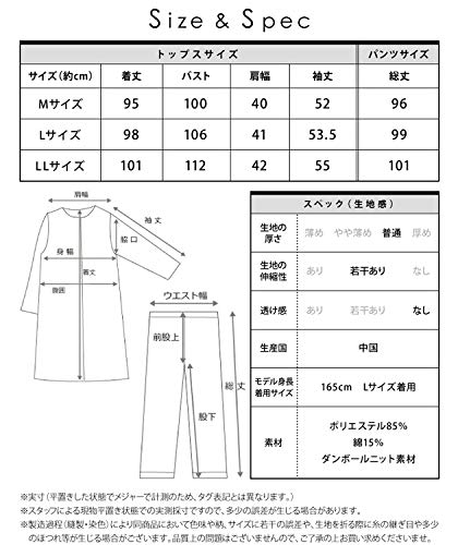 - 【M】トップス/着丈95 バスト100 肩幅40 袖丈52 ズボン/総丈96 cm