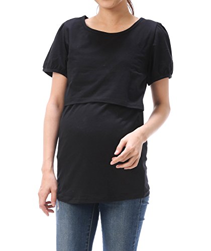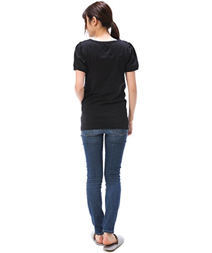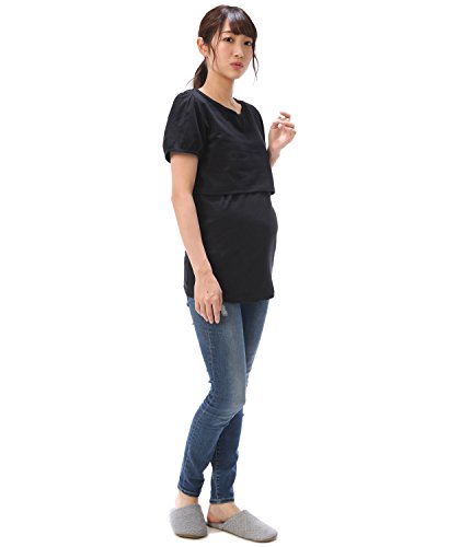 012032 マタニティ Tシャツ 半袖 授乳口付き 綿95% ストレッチ素材 産前 産後 着たまま授乳 妊婦服 トップス【ブラック/Mサイズ】