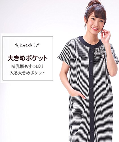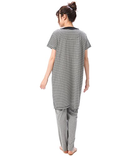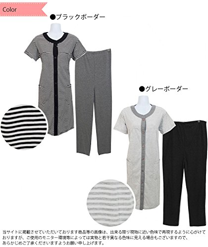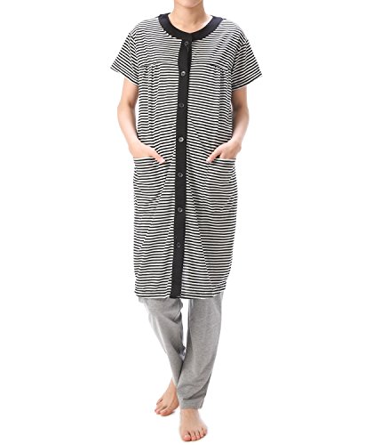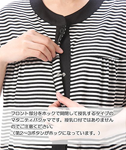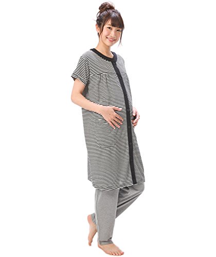 87079 Nishiki(ニシキ) マタニティ 半袖 上下セット 前開き ウエスト調整機能付きパンツ フロントホック開閉 チュニック丈 吸湿 保温 妊婦 授乳 産前 産後 春 夏 パジャマ ルームウェア 寝間着 入院準備【ブラックボーダー】