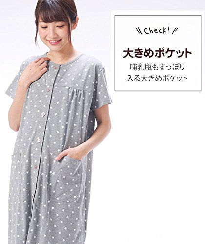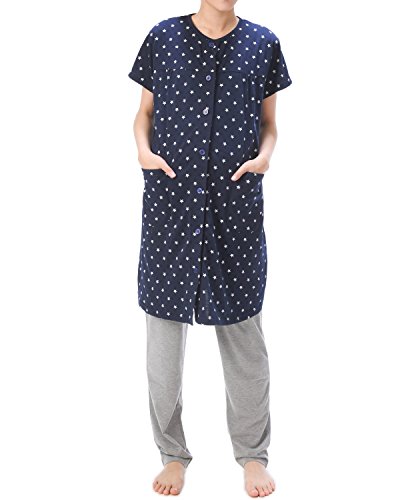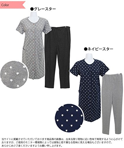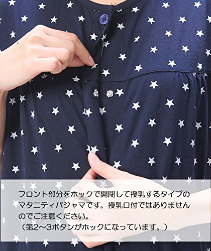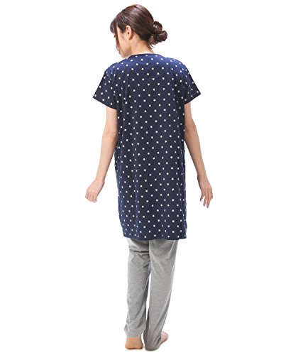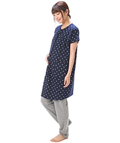 87075 Nishiki(ニシキ) マタニティ 半袖 上下セット 前開き ウエスト調整機能付きパンツ フロントホック開閉 チュニック丈 吸湿 保温 妊婦 授乳 産前 産後 春 夏 パジャマ ルームウェア 寝間着 入院準備【ネイビースター】