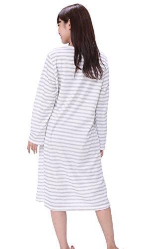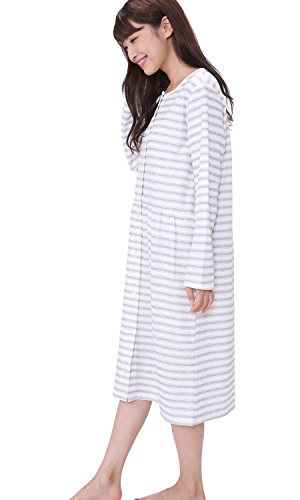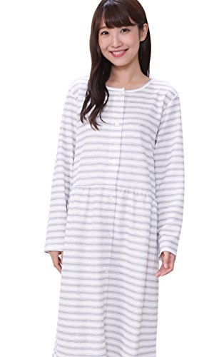 90096 ネグリジェ マタニティ パジャマ レディース 長袖 前開き ダンボールニット素材【グレーボーダー】