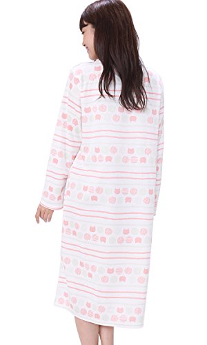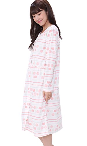 90096 ネグリジェ マタニティ パジャマ レディース 長袖 前開き ダンボールニット素材【キャットピンク】