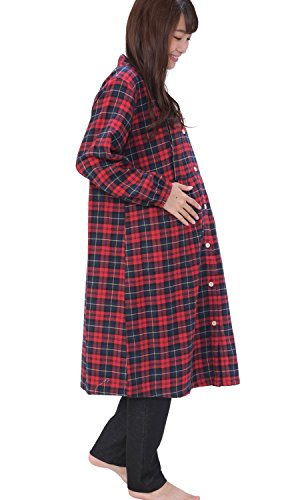 74150 パジャマ マタニティ レディース 長袖 前開き 授乳口付 産前産後 100丈 ビエラ素材 両面起毛 綿100%【1レッドチェックM】