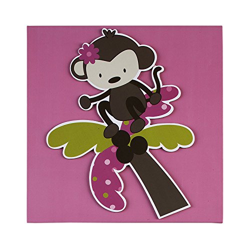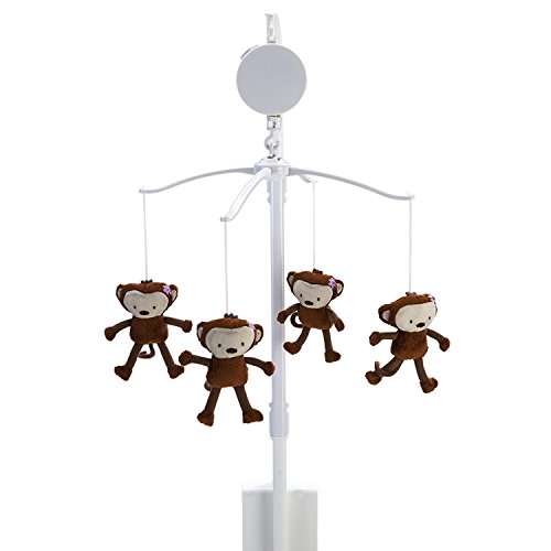 3 little monkeys jumping on the bed, oh my. Fun and playful ten piece comforter set includes; printed comforter, two crib sheets, dust ruffle, diaper stacker, musical mobile, diaper stacker, birth certificate, one wall hanging, two sheets of wall decals. Colors are bright pink, light pink, brown, tan, white with a pop of green. Machine wash separately in cold water, gentle cycle. Use only non-chlorine bleach when needed. Tumble dry on low heat. Do not iron.