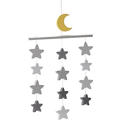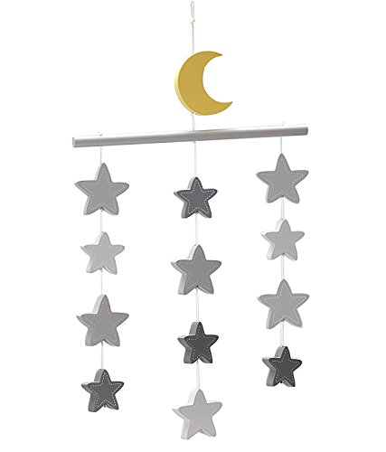 Little Love by NoJo - Ceiling Mobile - Soothe baby to sleep with this sweet, decorative mobile that sways gently in the breeze. This sweet, night sky-themed mobile features dangling stars in shades of grey beneath a golden crescent moon. Coordinates with a full line of nursery bedding and decor.
