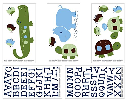 NoJo - Alligator Blues Wall Decals. Wall Decals come with 5 - 10" x 18" sheets of various stickers. Self-stick adhesive stickers wont harm your walls. Removable wall decals are quick and easy, just peel and stick. You can customize the look of your nursery or personalize your favorite rocker or toy box. See Ya-Later Alligator is featured with all his friends, Hippo, Turtles and Birds, plus a sheet of alphabet letters for custom look. Coordinates with a full line of nursery decor.
