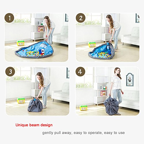 - 遊ぶときは広げてプレイマットとして大活躍。ヒモを引っ張るだけでお片づけ!おもちゃ遊びスペースが一気に収納袋に。