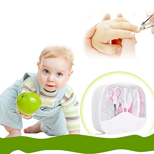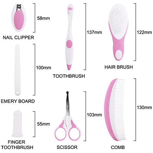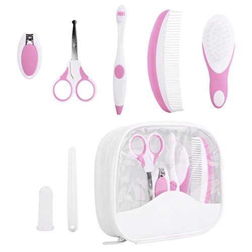 NoYuo ベビーケアセット ベビーレーベル ネイルケアセット コーム ブラシ 爪きり ハサミ ポーチ付き かわいい ピンク