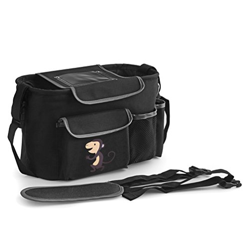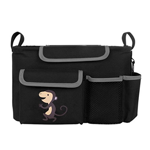 NoYuo ベビーカー用 多機能小物入れ ボトルホルダー 収納バッグ 両用タイプ 取り付け簡単 ポーチ (サル)