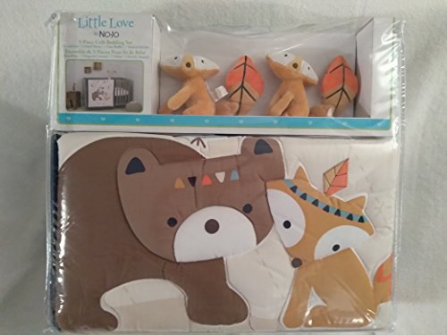 NoJo Little Love 5ピースベビーベッド寝具Fox and BearセットバンドルW Musical Mobile & 2 Fox Plush
